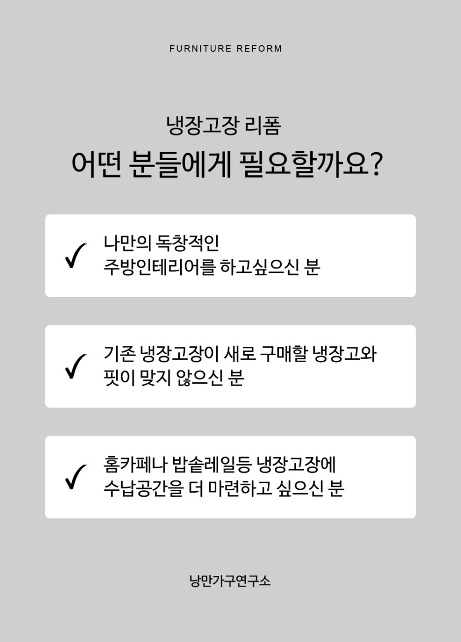낭만가구연구소 맞춤시공 냉장고장리폼 공동구매 전문